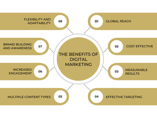 - Brand Building and Awareness: Businesses can build their brand awareness online through consistent digital marketing efforts.